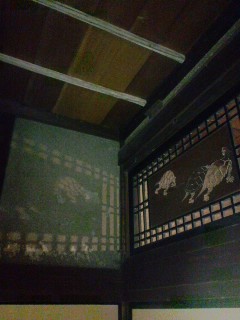 ↑欄間は亀が彫ってあり壁に亀が映ってとても綺麗でした。昔はろうそくの明かりなのでゆらゆら揺れて亀が泳いでいるように見えた、とガイドさんの説明(笑)